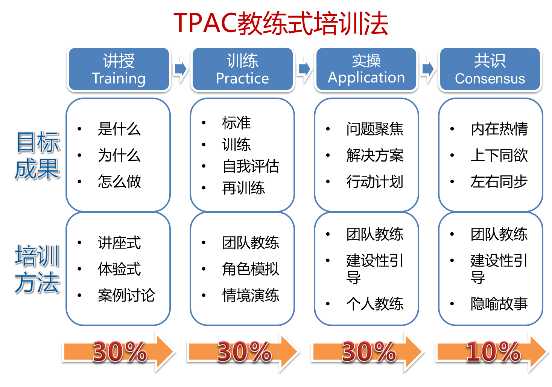 v 实现工作场景应用:通过当场教练指导,针对学员工作中遇到的实际情况给予提升和突破,达到立竿见影的效果;