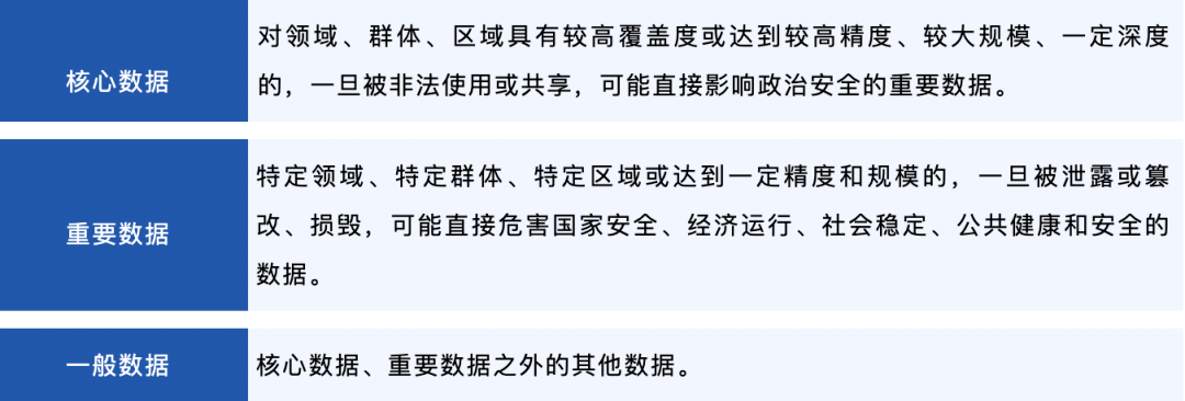 为了规范数据处理活动,保障数据安全,促进数据开发利用,《中华人民共和国数据安全法》于2021年9月1日正式施行,明确规定“国家建立数据分类分级保护制度”,提出“根据数据在经济社会发展中的重要程度,以及一旦遭到篡改、损毁、泄露或者非法获取、非法使用,对国家安全、公共利益或者个人、组织合法权益造成的危害程度,对数据实行分类分级保护”。